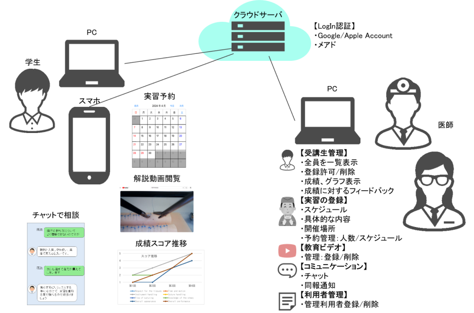 「外科トレーニングWeb管理システム」は、医療従事者の技術向上を支援するための多機能なウェブアプリです。